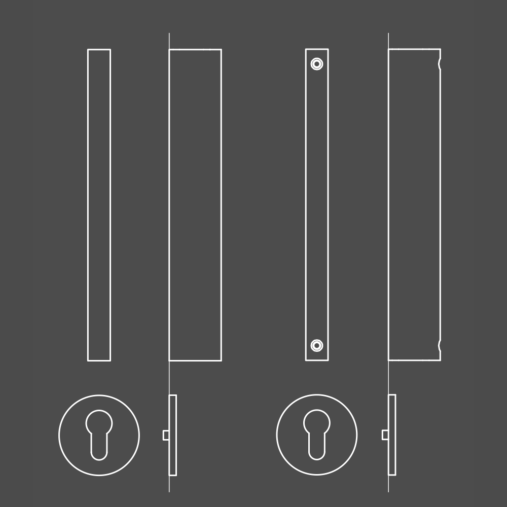 This pull handle is produced either in a minimalist full version or with a 2-finger grip hole.